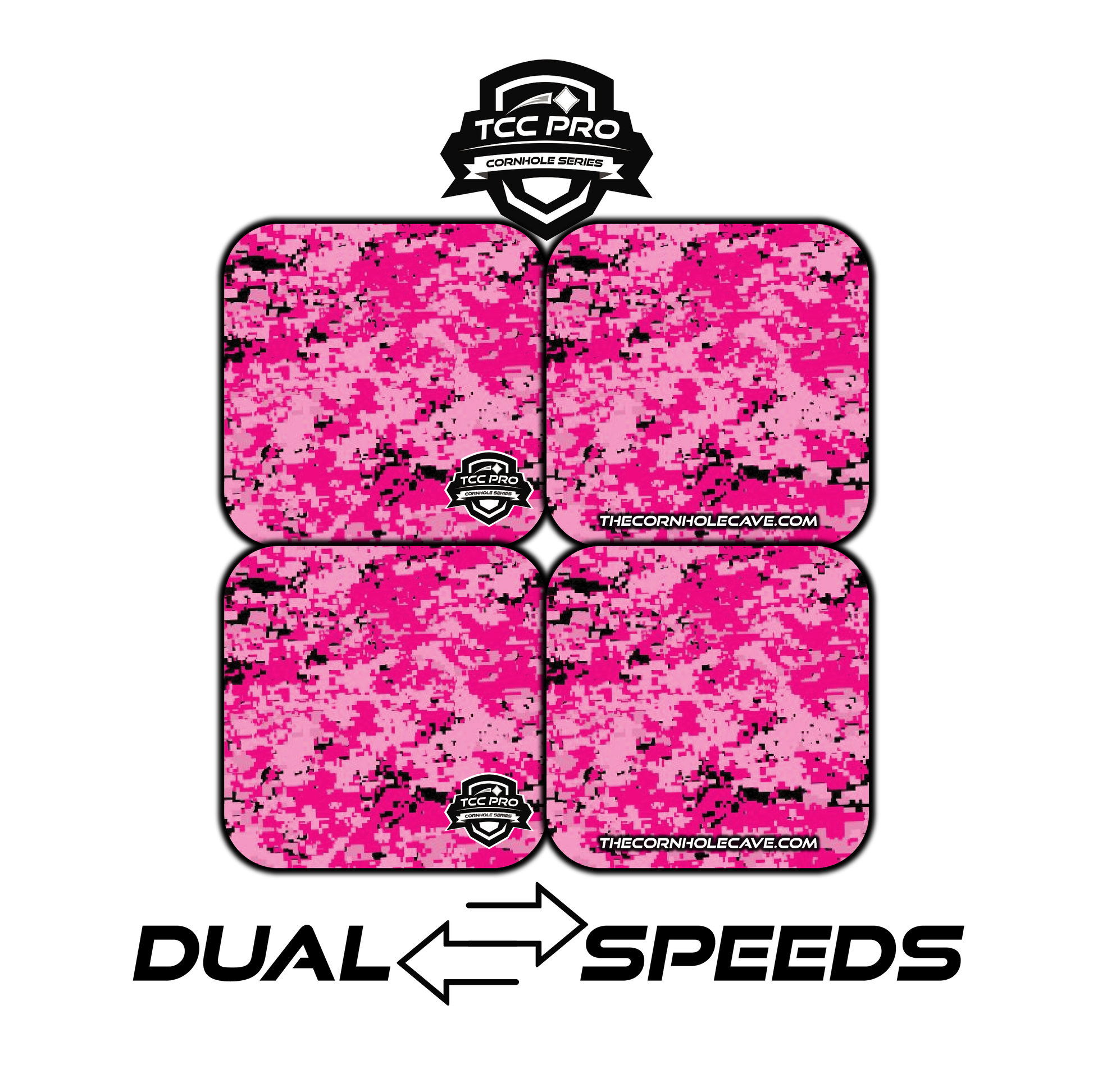 Elite Pro Cornhole Bags – Set of 4 - Extra Hole Friendly & 5x Longer Lasting - Digital Camo Pink
