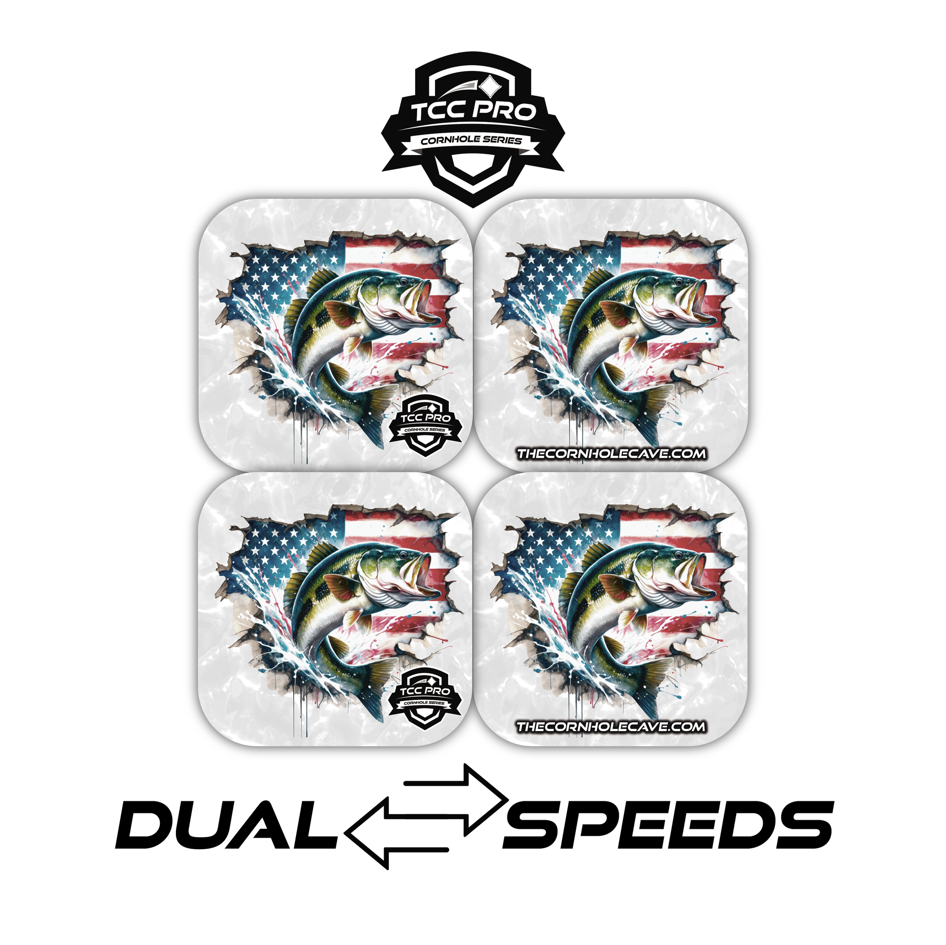 Elite Pro Cornhole Bags – Set of 4 - Extra Hole Friendly & 5x Longer Lasting - Patriotic Fish Breaking Through