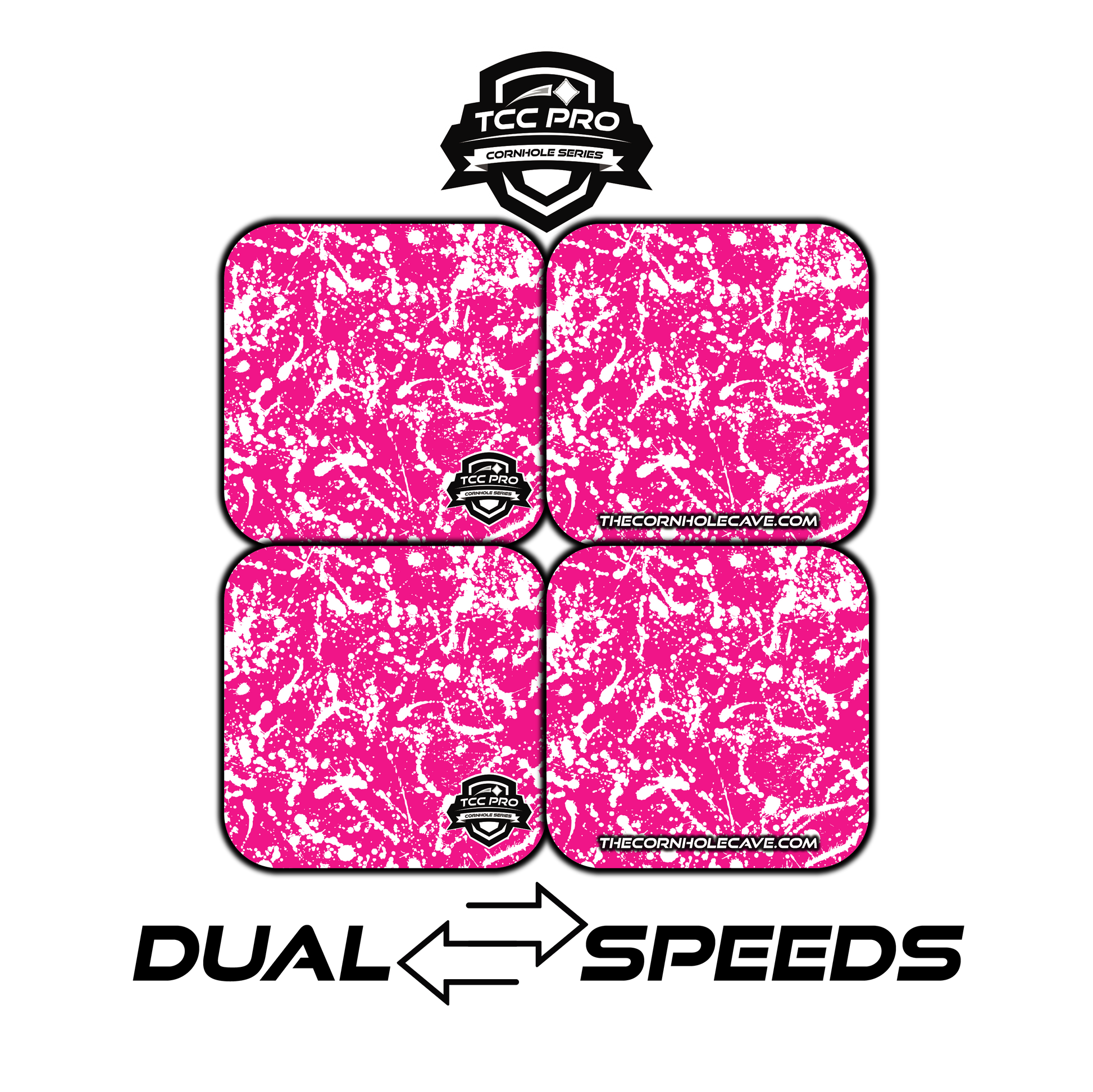 Elite Pro Cornhole Bags – Set of 4 - Extra Hole Friendly & 5x Longer Lasting - Pink White Paint Splatter