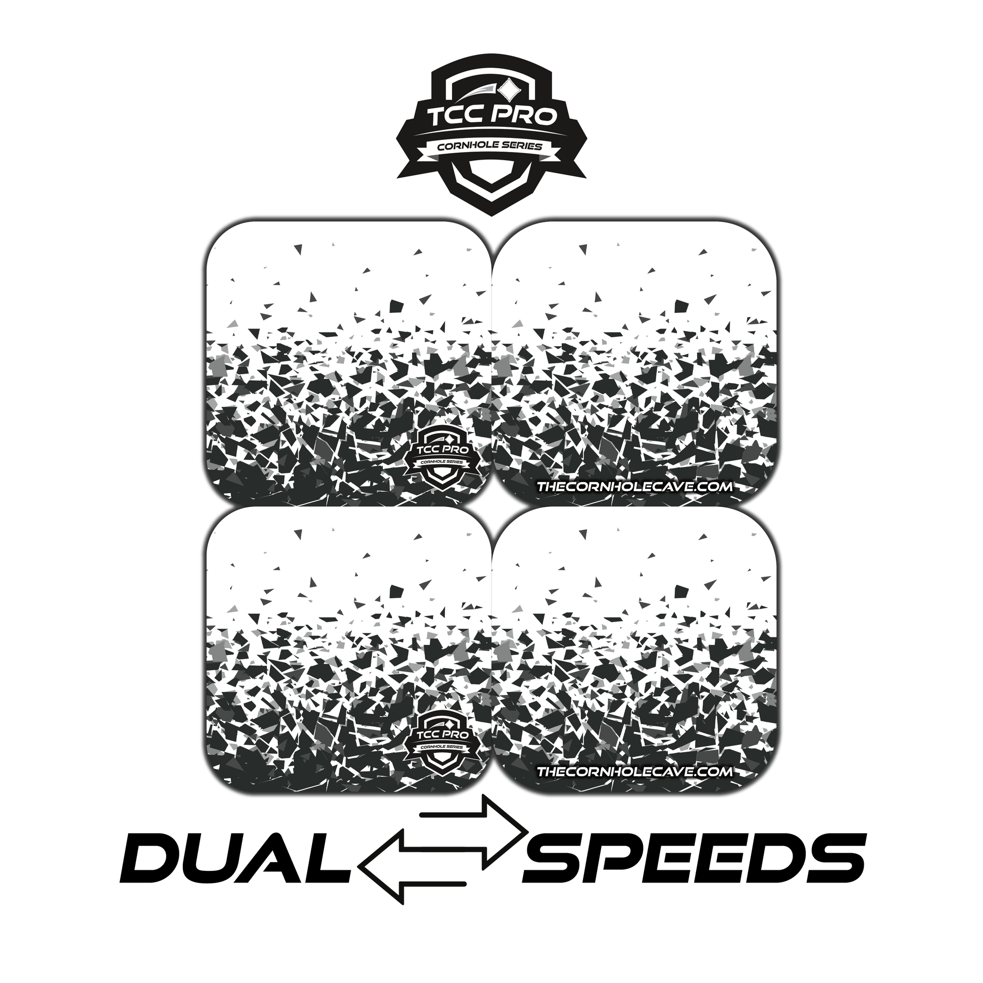 Elite Pro Cornhole Bags – Set of 4 - Extra Hole Friendly & 5x Longer Lasting - Shattered Glass Black White