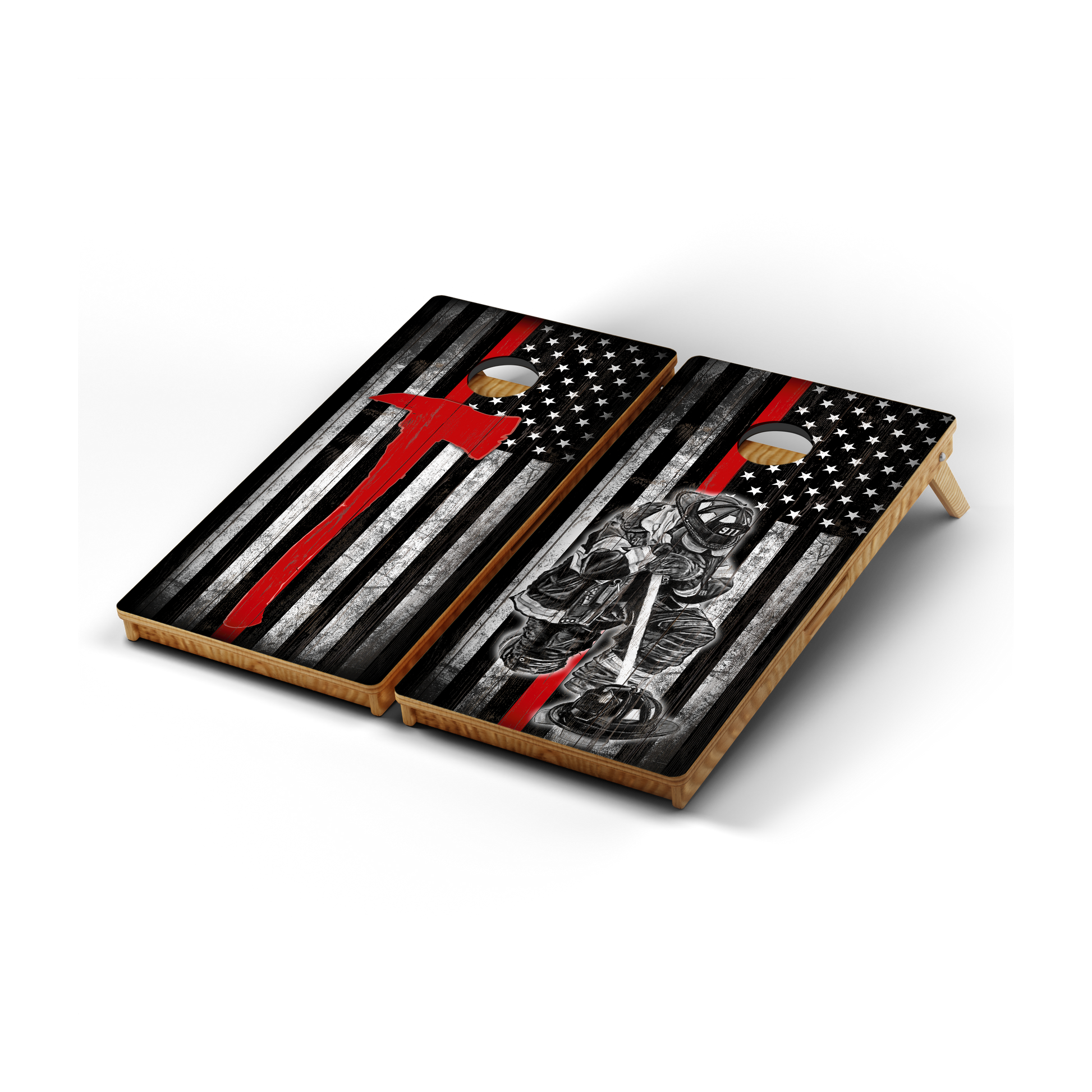 Professional Cornhole Boards – 5 Levels of Quality for Every Player - Thin Red Line Axe Kneeling Firefighter