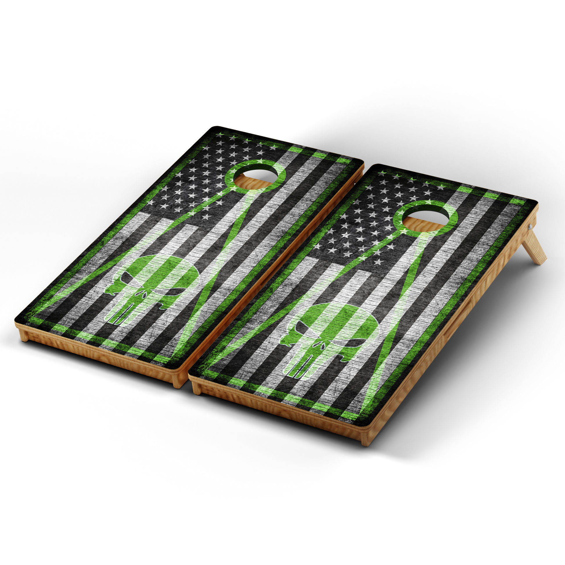 Professional Cornhole Boards – 5 Levels of Quality for Every Player - Punisher Skull US Flag Triangle